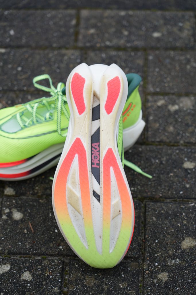 Hoka continue de miser sur une mousse PEBA ultra réactive, associée à une plaque carbone